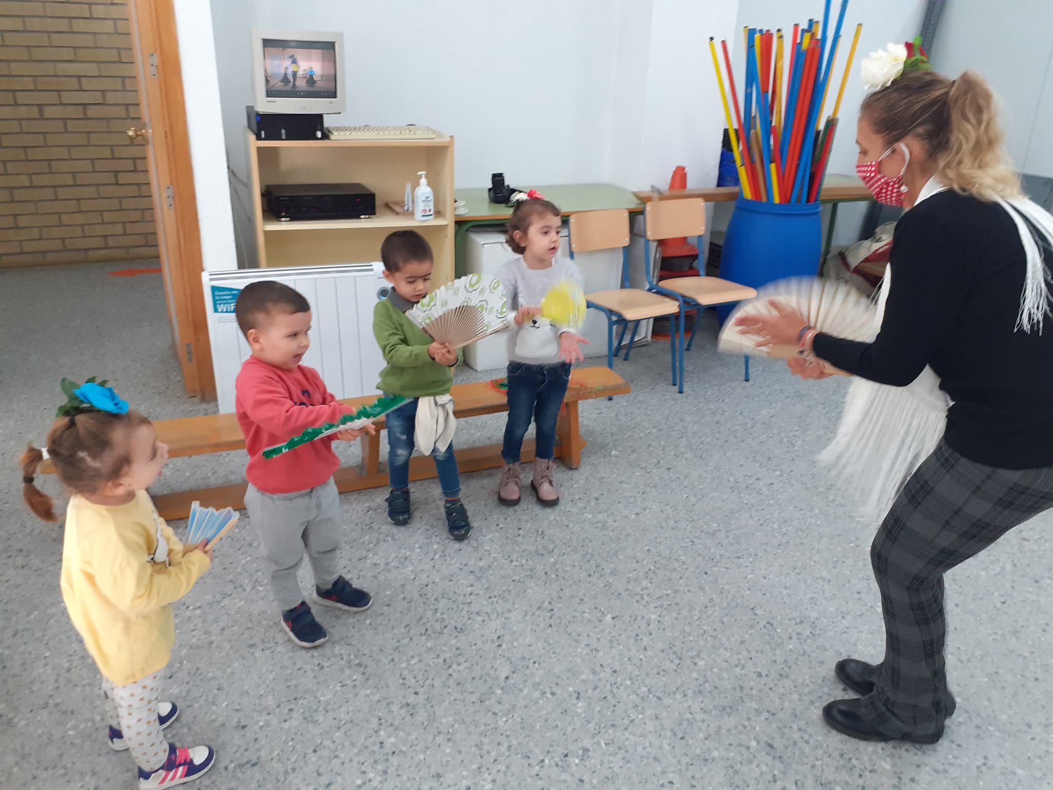 Para meternos más en nuestro papel les hemos pedido a los niños y niñas de 3 años que vinieran al cole con algún complemento flamenco (flor, mantoncillo, pañuelo...) y así de guapos y guapas vinieron nuestros flamencos y flamencas.