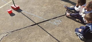-construimos a lo largo de toda la mañana del miércoles un reloj de sol. Fuimos saliendo a la zona de los coches cada hora, desde las 10 hasta un poco antes de las 2.