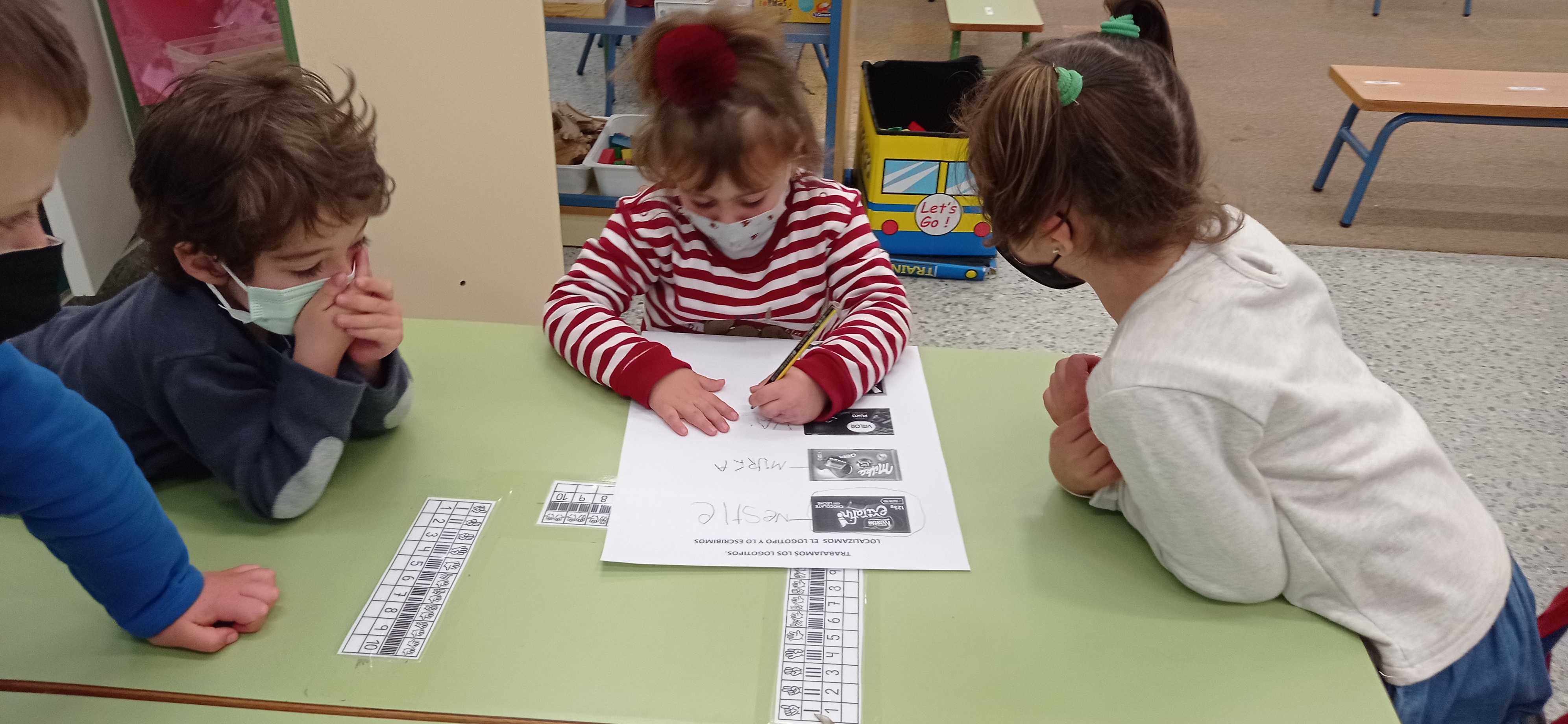 Por grupo solo hay un folio que gira de uno a otro,y un lápiz.