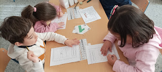 Tan importante es el trabajo individual como el que hacen en equipo, en este caso se están autoevaluando con unos termómetros, son capaces de pensar si respetaron las normas del trabajo en equipo....colorean de verde si respetaron siempre las normas, de rojo sino respetaron nada y de amarillo si cometieron algún error.